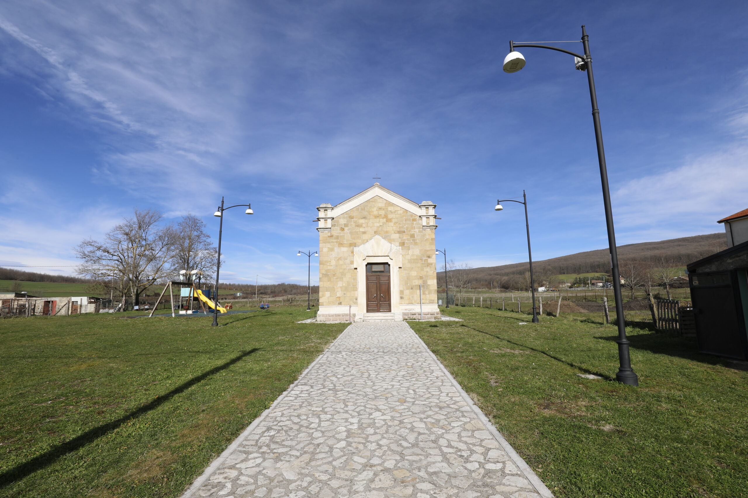 L’edificio, a navata unica e pianta rettangolare, si distingue per la ricchezza delle decorazioni in pietra calcarea bianca, che spiccano sul rivestimento in conci di pietra arenaria. Come descritto dallo studioso Lucio Cappiello, i cordoli alla gronda e sui timpani conferiscono eleganza alla struttura, coronata da quattro torrini angolari e un’edicola campanaria sul retro. Gli intagli lapidei, di grande pregio, furono realizzati dallo scalpellino aviglianese Pietro Manfredi.