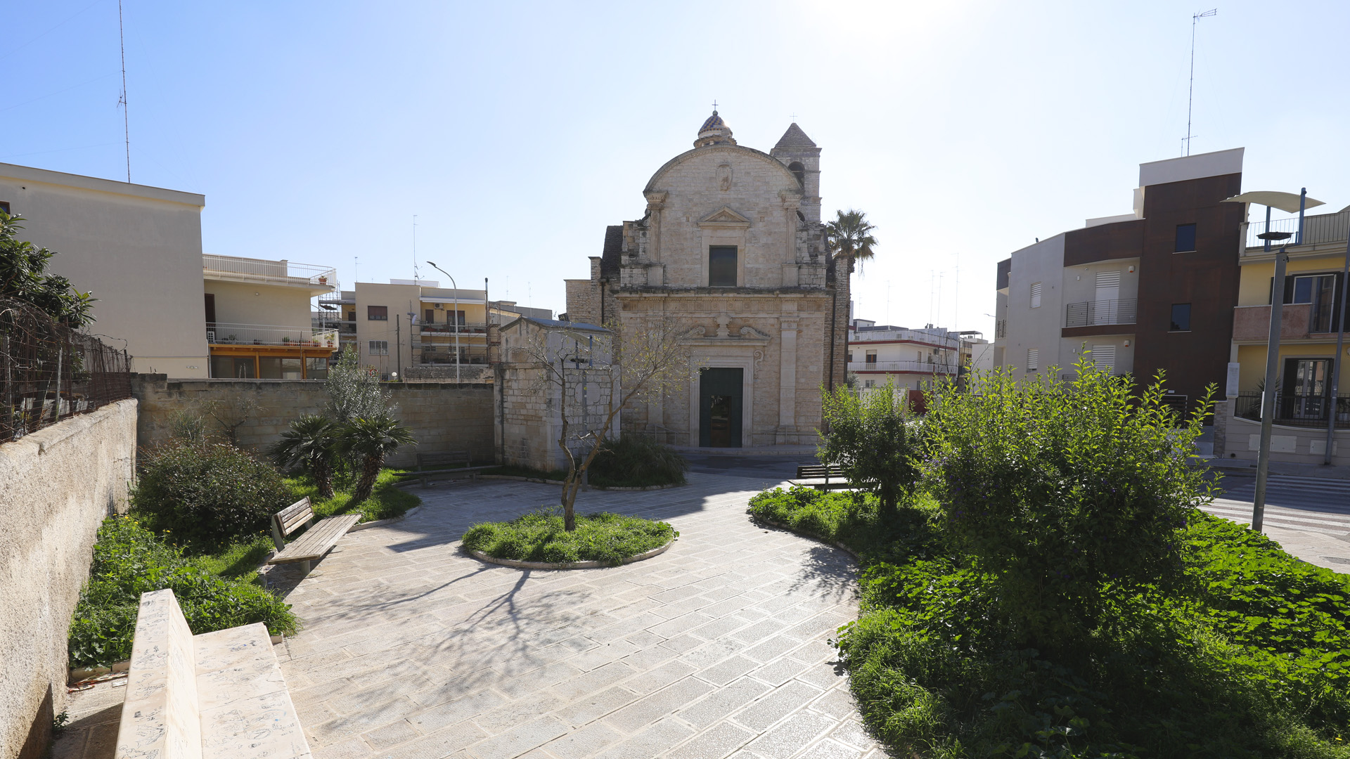 La Chiesa del Crocifisso, situata nella zona est della città, affonda le sue radici nel testamento del reverendo Francesco Grisulli, il quale donò al Capitolo della Cattedrale il podere su cui sorgeva una cappella. Dopo oltre un secolo dalla donazione, nel 1663, l’illustre pittore e architetto bitontino Carlo Rosa progettò la nuova chiesa, diresse i lavori e realizzò i cartoni per gli affreschi interni. La consacrazione avvenne nel 1671 ad opera del vescovo Tommaso Acquaviva.
