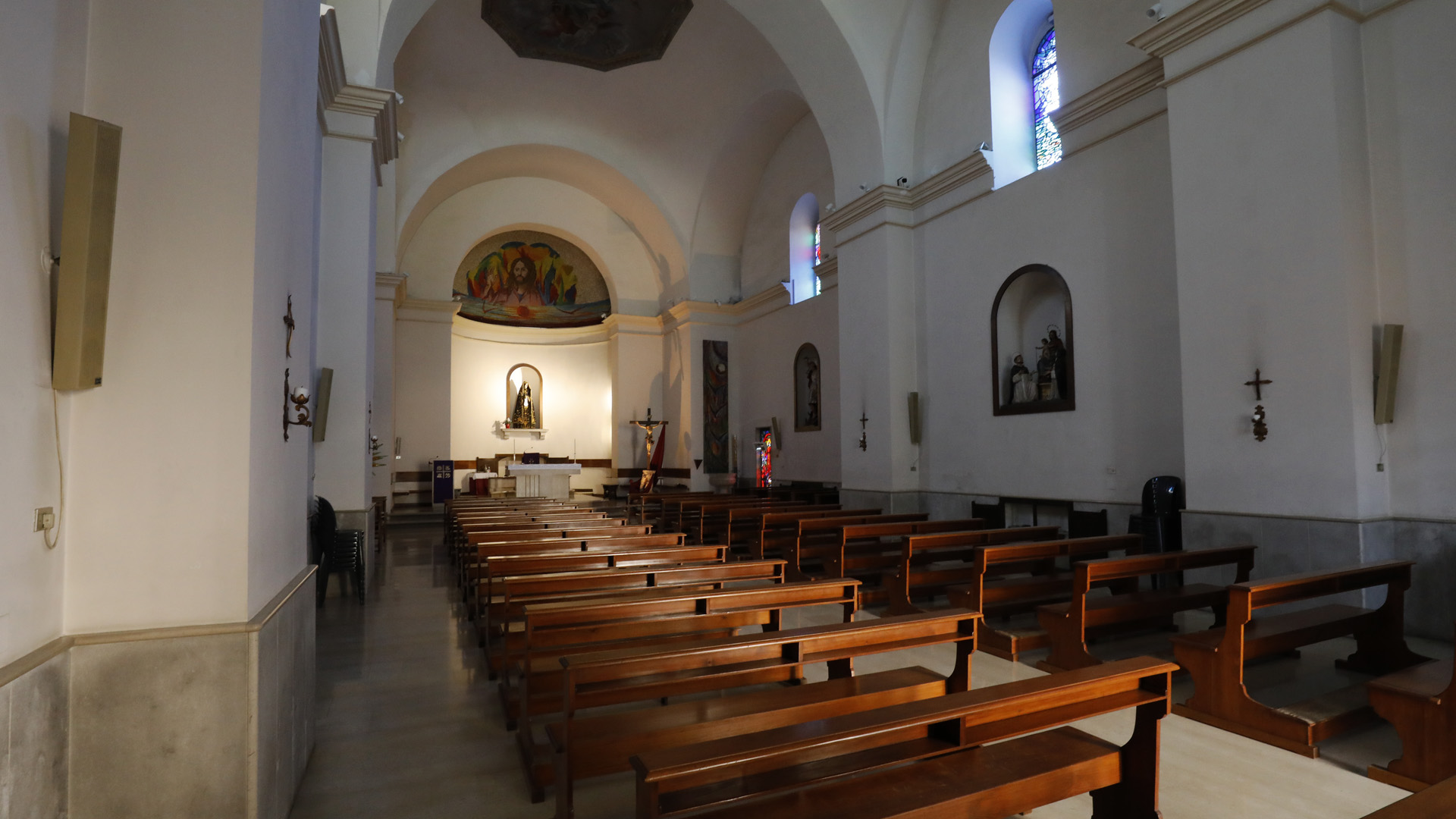 L’interno presenta una navata unica, scandita da tre arcate e sormontata da volte a crociera. L’ingresso è sovrastato da una cantoria in legno, che ospita l’organo e in passato accoglieva il coro. Accanto agli ingressi laterali, due eleganti acquasantiere accolgono i fedeli.
