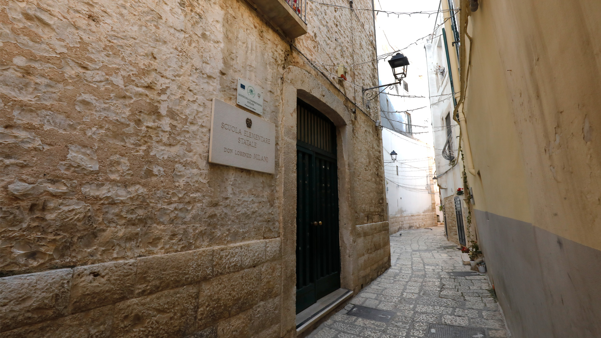 Questo vasto isolato del centro storico, oggi sede della scuola dell’infanzia e primaria “Don Milani”, era fino al 1922 occupato dal convento delle Suore Benedettine di Clausura del Sacro Monte Oliveto. Ad esso si affiancava la chiesa di San Pietro Nuovo.