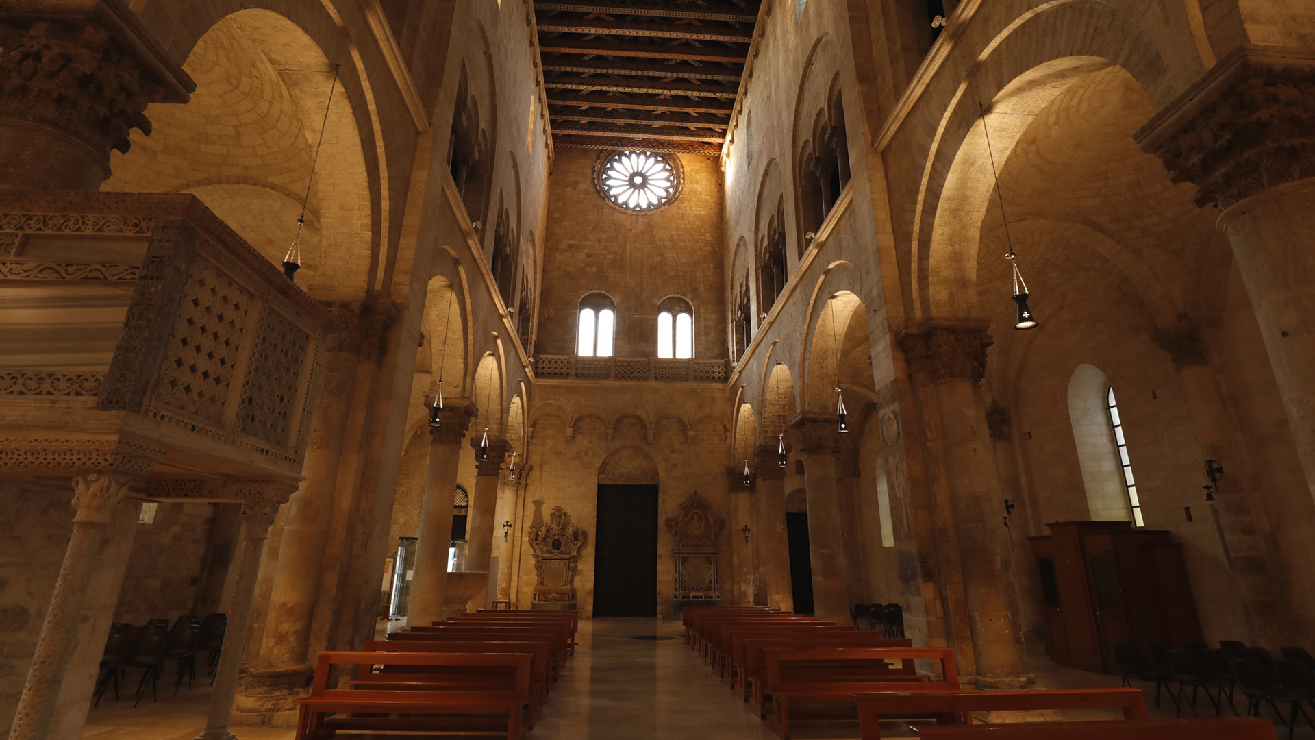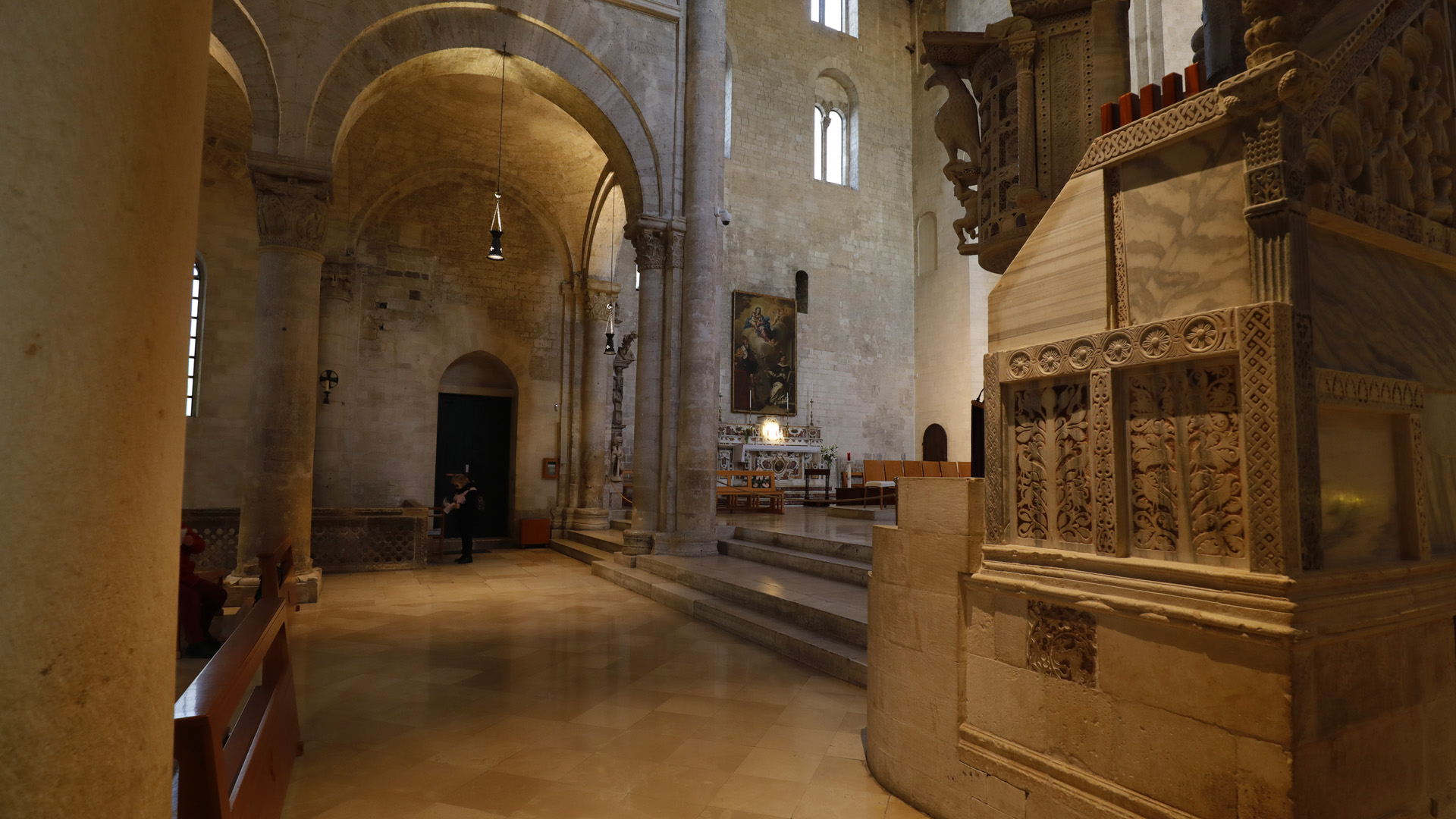 L’ambone di Nicolaus, datato 1229, si trovava in origine nei pressi del pilastro centrale e fu spostato nel Settecento. La firma dell’autore compare sul leggio, accanto ai simboli dei quattro evangelisti.