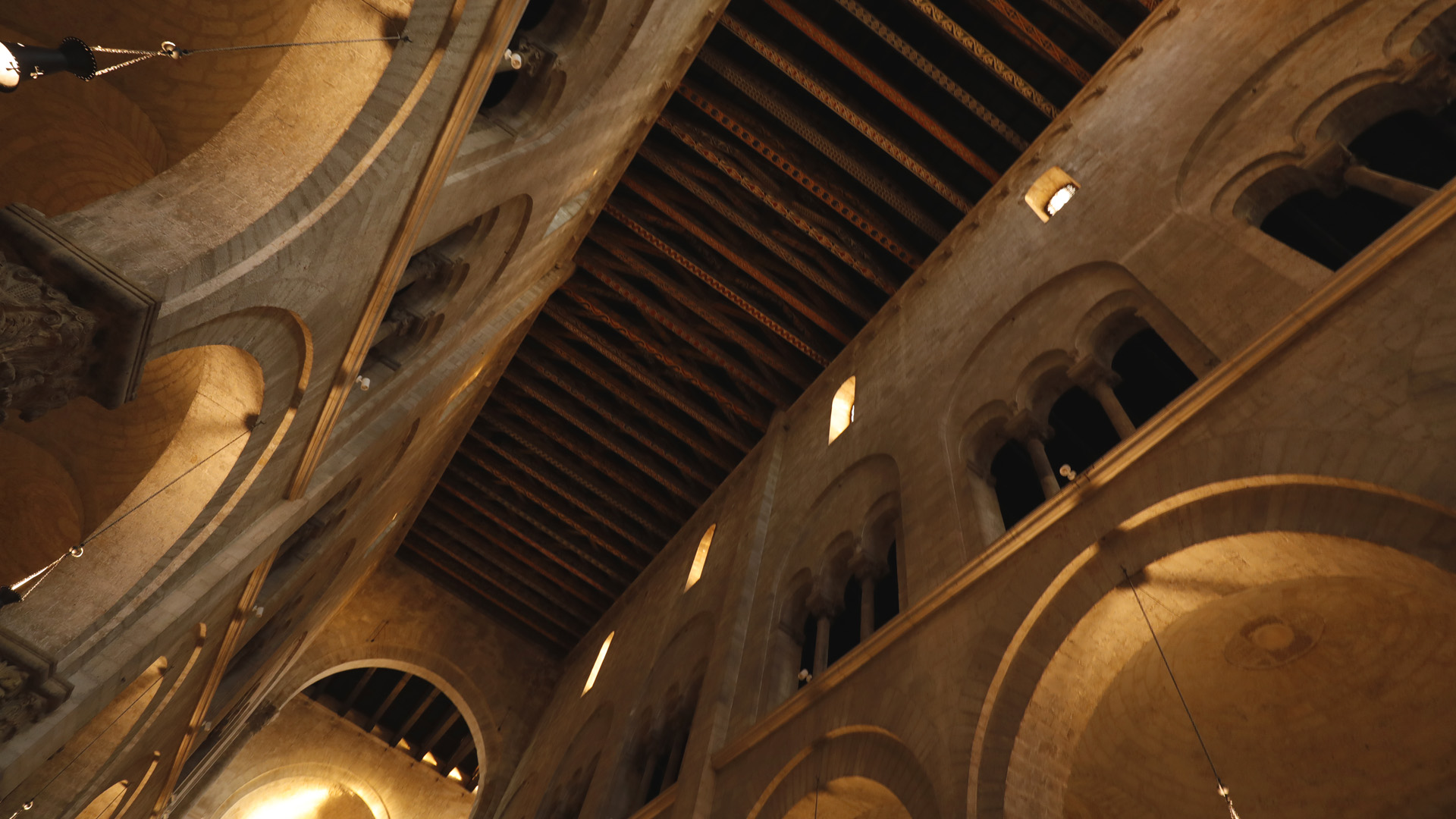 I capitelli delle navate sono un tripudio di figure vegetali e animali. Tra questi, uno dei più noti rappresenta il mito di Alessandro Magno che, secondo la leggenda medievale, volava verso il cielo su un carro trainato da grifoni attirati da esche sospese.