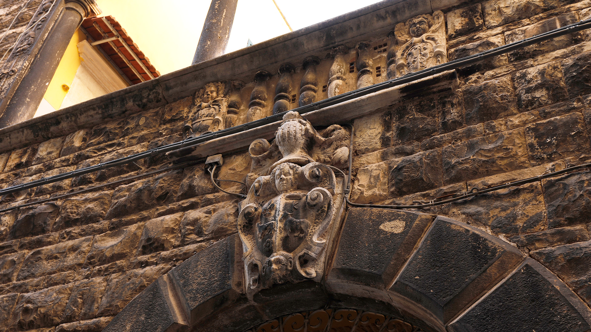 Un intervento successivo, databile alla seconda metà del Seicento, portò alla costruzione del balcone sul limite sinistro della facciata, che ingentilì l’insieme. Centrale, ben evidente, spicca lo stemma tripartito che riporta l’arme della famiglia Scaraggi e, forse, della famiglia Ferri. La costruzione del balcone testimonia il passaggio della proprietà del palazzo ad altre famiglie, unite da legami matrimoniali. Questo passaggio veniva sancito con l’apposizione degli stemmi familiari anche sui pilastrini della balaustra della loggia.