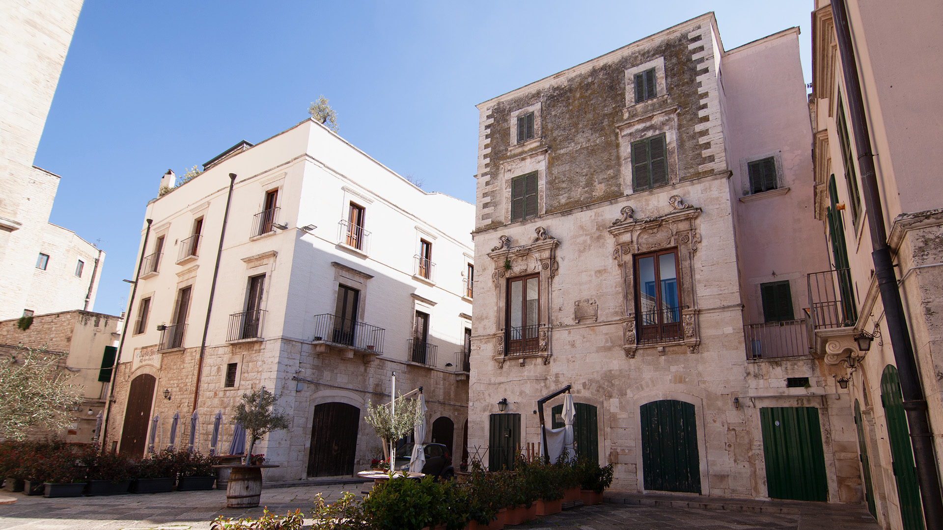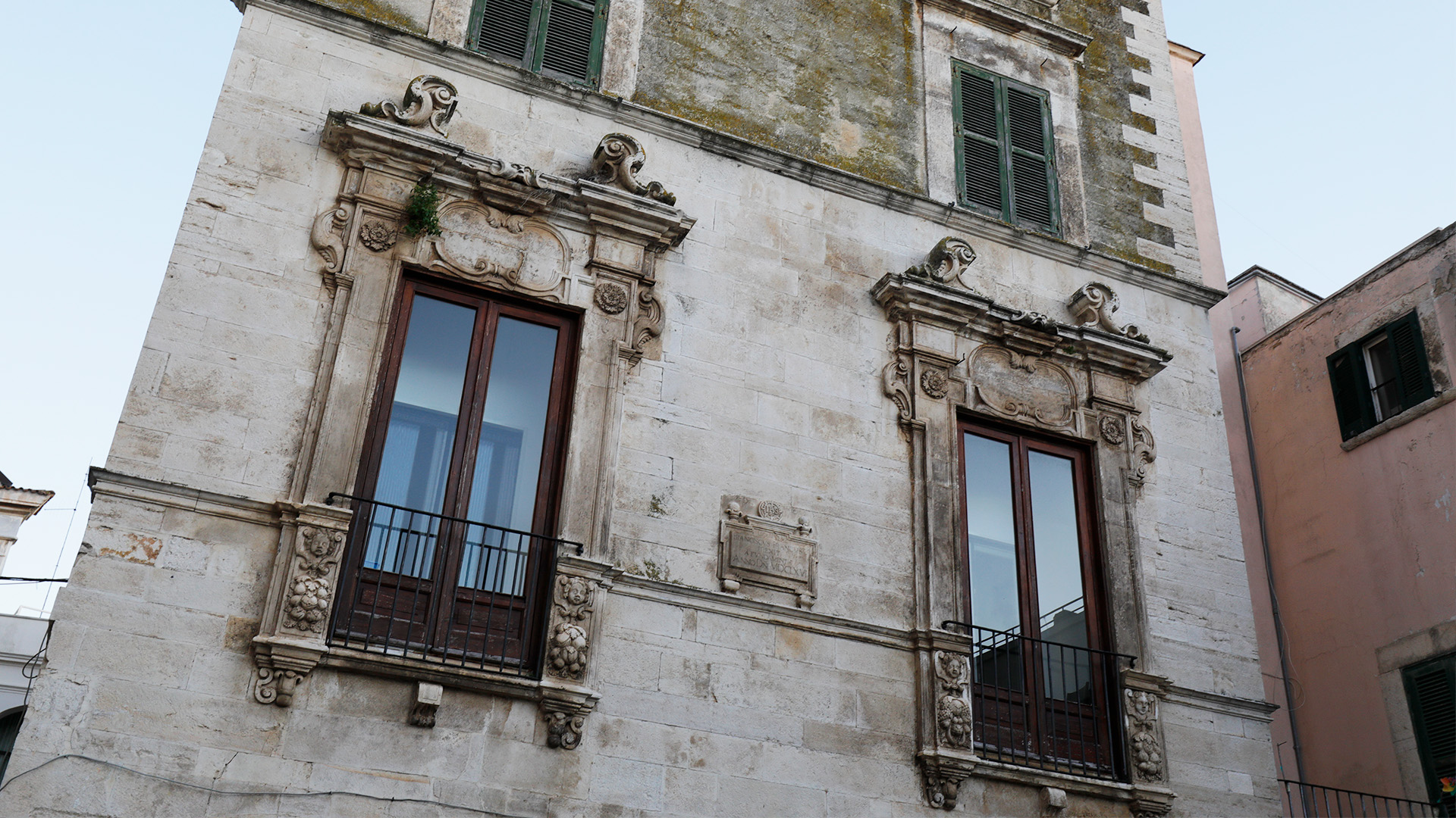 Di particolare pregio sono i balconcini, impreziositi da due rose metalliche agli angoli, simbolo dello stemma dei principi Spinelli, famiglia originaria di Giovinazzo e già feudataria sotto Federico II. La presenza di questo motivo decorativo richiama la partecipazione della famiglia alla storica Guerra delle Due Rose.