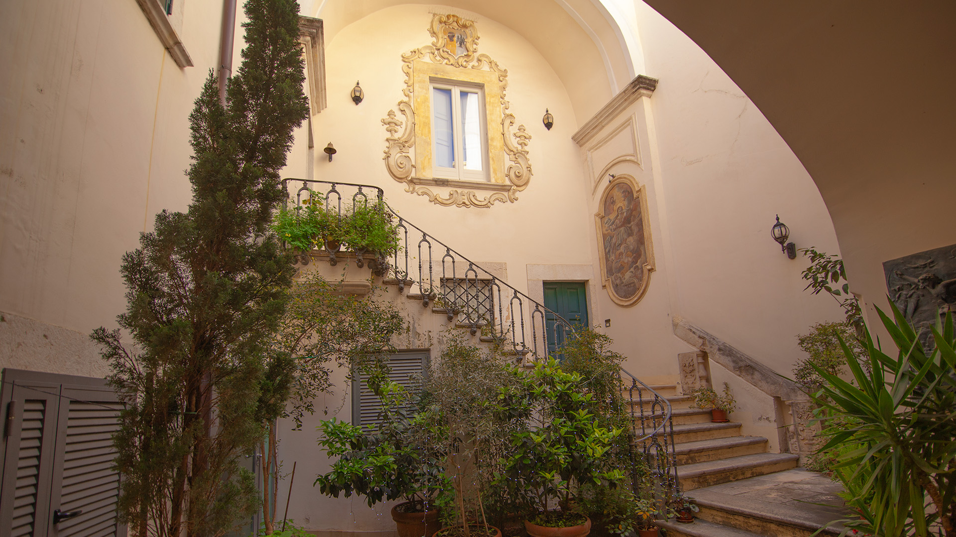 Di particolare interesse è anche il dipinto a encausto raffigurante l’Assunzione della Vergine, situato nel cortile e attribuito alla bottega del pittore molfettese Vito Calò.