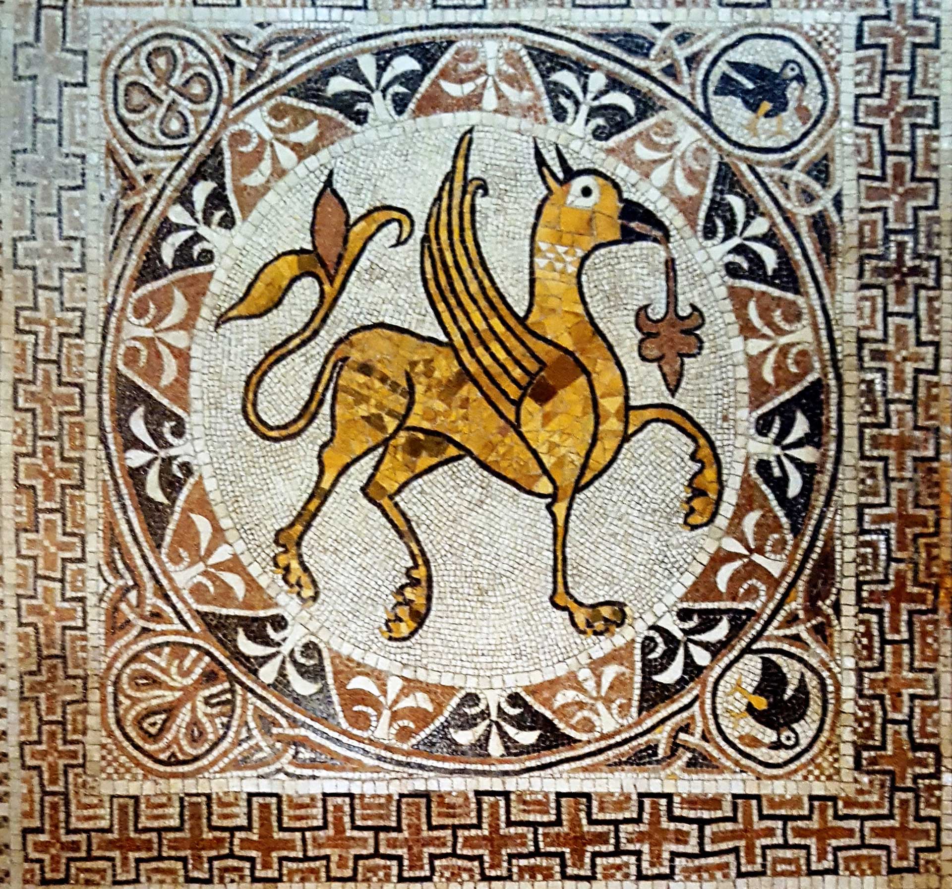 Ma è soprattutto una scoperta a catturare l’attenzione: un mosaico straordinariamente ben conservato, databile alla metà dell’XI secolo, raffigurante un grifo rampante inscritto in una doppia cornice circolare. Questo capolavoro è sopravvissuto intatto nei secoli, nonostante le trasformazioni subite dall’edificio e il peso del tempo.