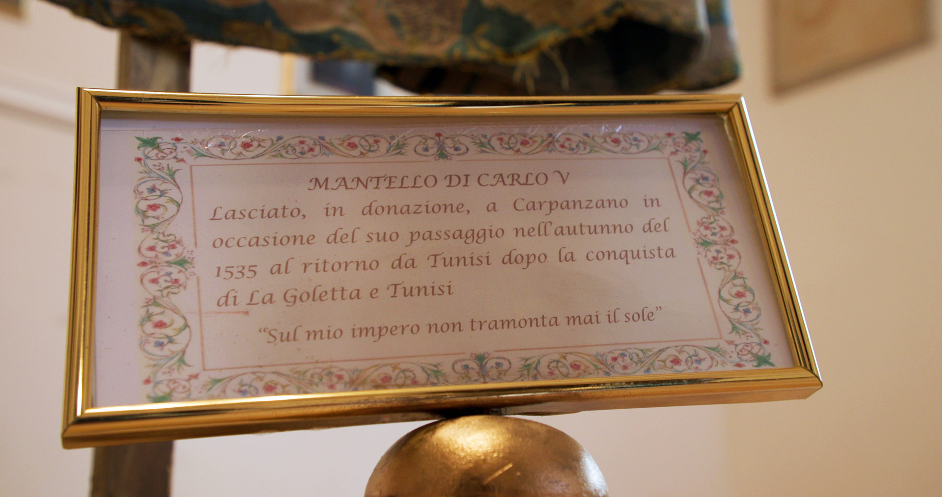 Questo cimelio, in seguito utilizzato come piviàle durante le cerimonie religiose, rappresenta il legame indissolubile tra Carpanzano e la storia dell’impero. Realizzato con materiali pregiati, il mantello si distingue per la finezza delle decorazioni e per il significato che porta con sé: un simbolo di potere, ma anche di protezione e gratitudine verso la comunità locale.